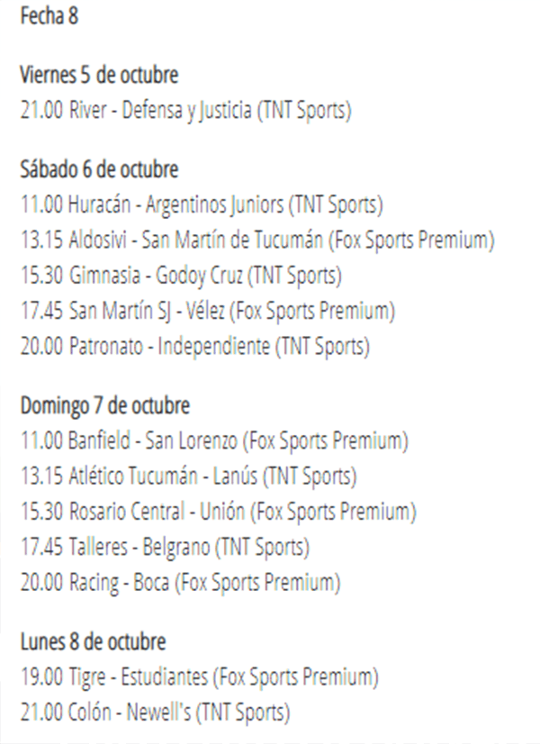 Por lo tanto, se especula con que tanto Guillermo Barros Schelotto como Marcelo Gallardo elijan a los habituales suplentes para priorizar el certamen internacional, por lo que habrá que esperar qué ocurre dentro de casi un mes. Además, Racing intentará mantenerse en la cima y los otros dos grandes, Independiente y San Lorenzo, buscarán recuperarse luego de haber sumado muy pocos puntos en lo que va del torneo.