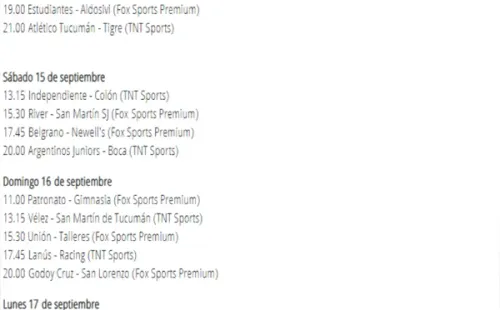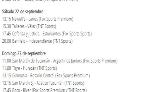 Boca – River se llevará a cabo entonces el domingo 23 de septiembre a las 17.45 por la sexta jornada y la particularidad es que encontraráa ambos equipos en el medio de los dos partidos de los cuartos de final de la Copa Libertadores, frente a Cruzeiro de Brasil e Independiente respectivamente.