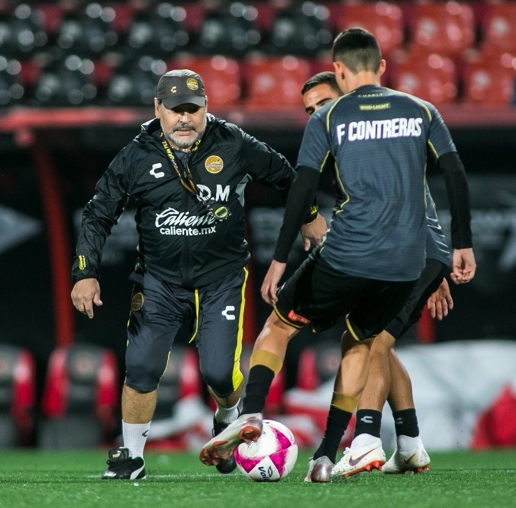 Diego Armando Maradonadirige a Dorados del Ascenso de México, es cierto, pero aprovechó esta doble Fecha FIFA de octubre para que sus dirigidos sumen rodaje contra equipos de la Primera División.