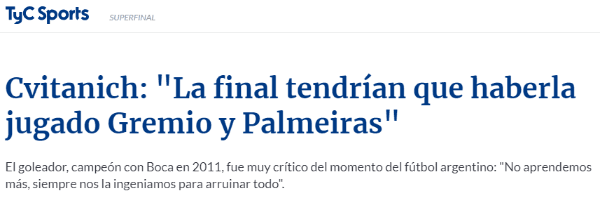 Para cerrar, Cvitadisparó: “Es lamentable lo que pasó. Creo que a todos nos dio una tristeza grande, impotencia. Como siempre digo, creo que hemos tocado fondo y ya es cansador”.