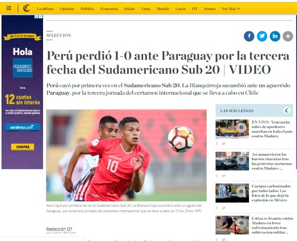 Luego de la caída en la segunda salida, varios medios hicieron eco del duelo ante el seleccionado paraguayo.