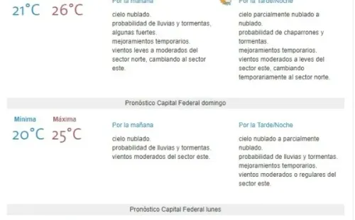 Pero… ¿cómo va a estar el clima mañana a esa hora? Los principales servicios meteorológicos de la República Argentina anuncian más lluvias, por lo que el panorama no se presenta tan favorable tampoco.