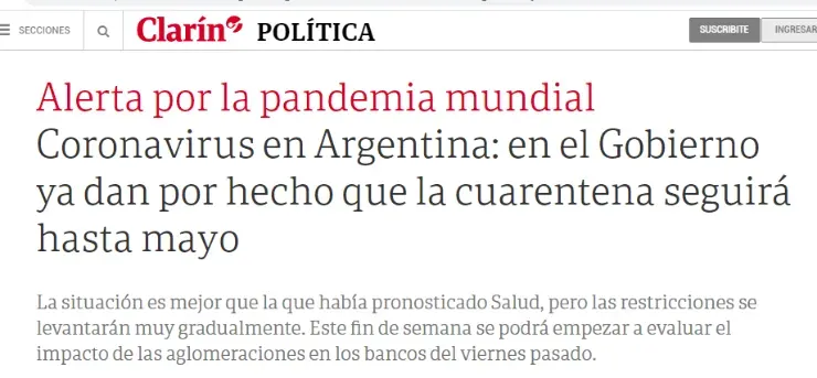En primera instancia se habló de una nueva fecha que sería el 23 de abril, pero ahora parece que las autoridades no ven que para ese día pueda finalizar la cuarentena.