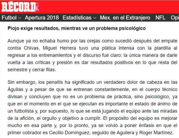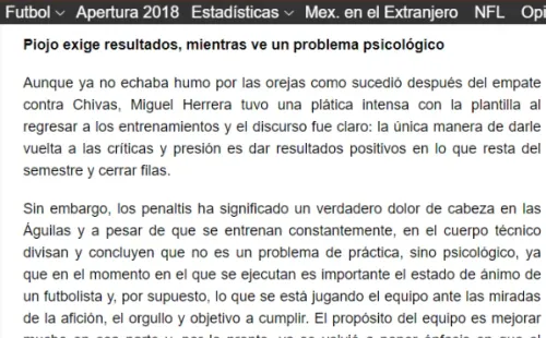 Ahora, el periodista sin nombre reveló que Miguel Herrera cree que el equipo no sufre un problema futbolístico, sino psicológico.