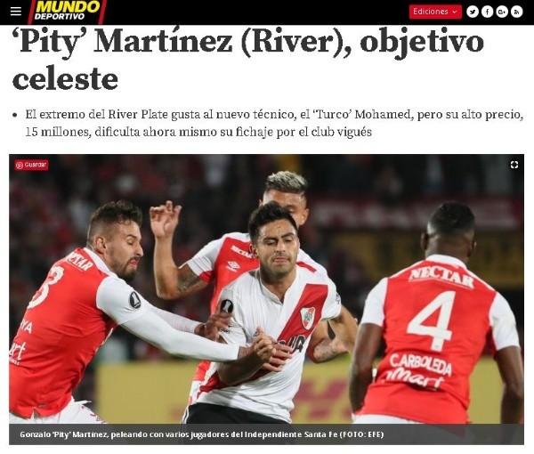 Según publicó Mundo Deportivo, el Celta de Vigo tiene en carpeta a Gonzalo Martínez, volante Millonario.
