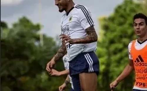 En pleno entrenamiento, una foto agarró a Paulo Dybala con una cara muy particular y su compañero TucuPereyrano dudó en trollearlo.