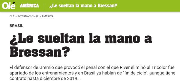¿Qué será del destino de Bressan? Nadie lo sabe. Lo único seguro es que el héroe de River está atravesando un auténtico calvario.