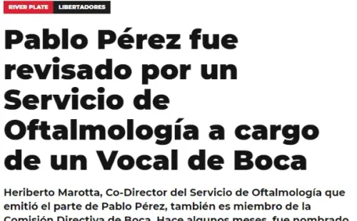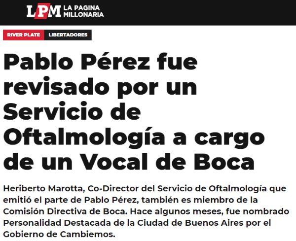 Heriberto Marotta, quien emitió el parte del volante por la lesión sufrida en su ojo, es miembro de la Comisión Directiva de Boca.
