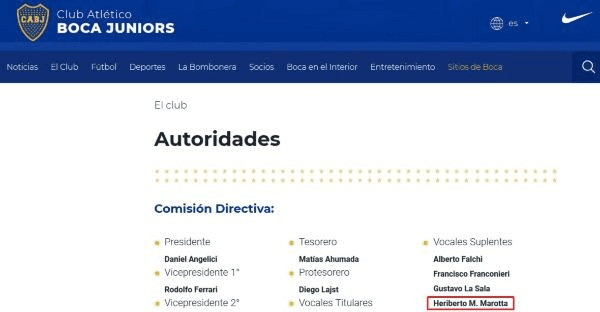 Marotta está vinculado a la institución Xeneize, ya que aparentemente es vocal del elenco de La Ribera. Para completar, Heriberto es también Jefe del Departamento Médico de Boca