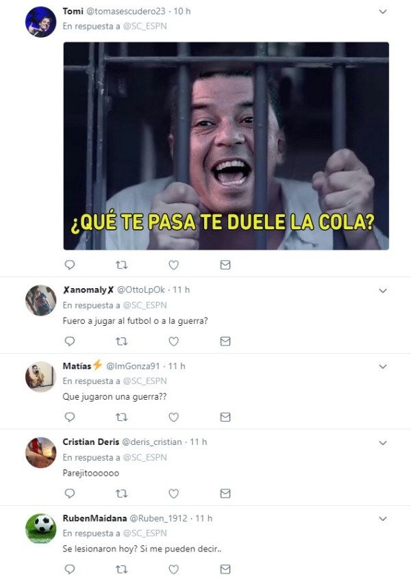 En las redes sociales no pasó desapercibido el parte de la enfermería de Independiente y fueron muchos los que adjudicaron a River gran parte de la responsabilidad.