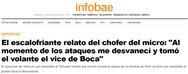 Continuando con el relato, al reaccionar, el conductor se dirigió al vicepresidente del Xeneizepara transmitirle. Siguiendo con la narración, el chofer explicó: “Reacciono de vuelta, manoteo el volante fuerte y digo ‘estoy bien’. Fue un momento que me quedé sin aire.Lo peor fue en las calles Quinteros y Libertador, ahí fue el ataque masivo”.