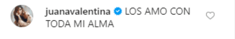 Una de las más efusivas fue su hermana, Juana Valentina, quien le comentó: “Losamo con todo mi alma”, en mayúsculas. La familia Rodríguez se mostró muy contenta por el anuncio.