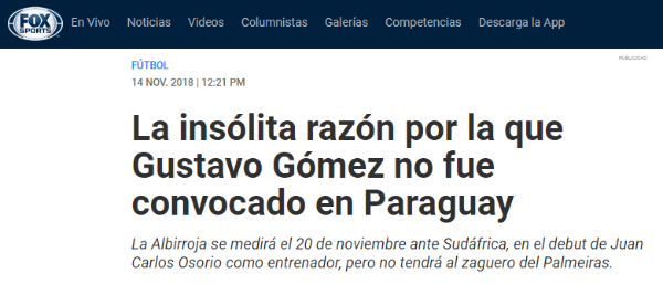 El motivo por el cual no fue llamado sería más que insólito. Según FOX Sports,la APF “no envió a tiempo el requerimiento por el jugador al Palmeiras”.