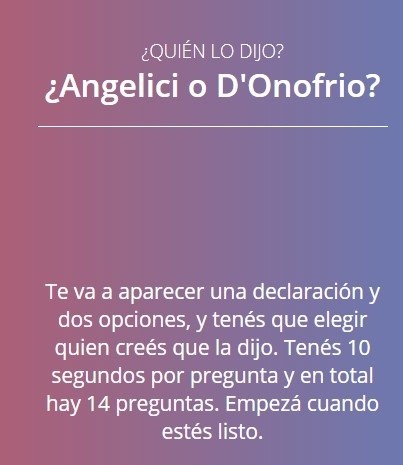El mismo, presenta 14 frases, y el usuario tiene que adivinar si las dijo uno u otro, y si fue en 2015, año que sucedió lo del gas pimienta, o en la actualidad, en el contexto de lo sucedido en el Monumental.
