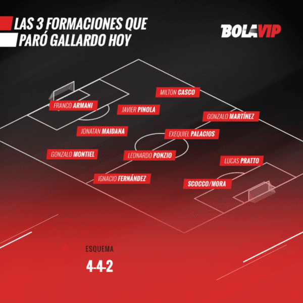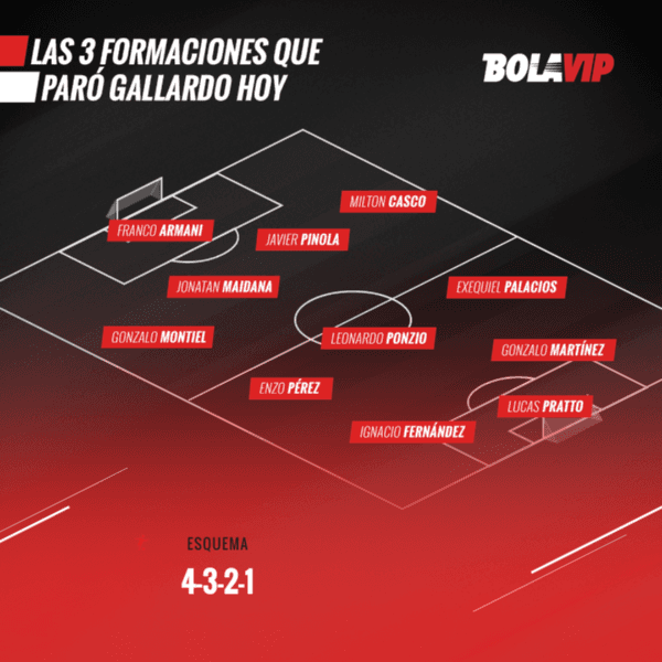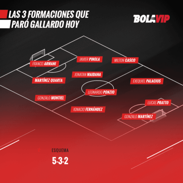 Eso sí, en todos los equipos usados se repitieron diez nombres: Franco Armani, Gonzalo Montiel, Jonatan Maidana, Javier Pinola, Milton Casco, Ignacio Fernández, Leonardo Ponzio, Exequiel Palacios, Pity Martínez y LucasPratto.