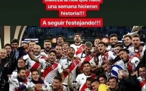 En la misma, con una foto del festejo de la Copa Libertadores, expresó: “Cabeza arriba que hace una semana hicieron historia. A seguir festejando”.