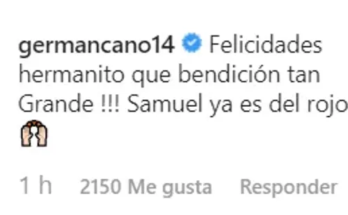 Enseguida todos sus seguidores y conocidos lo empezaron a felicitar, empezando por su mamá, hermana, Shannon de Lima y Falcao, pero hubo un comentario que no pasó desapercibido y fue el de Germán Ezequiel Cano.