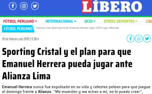 La expulsión de Emanuel Herrera ante Sport Huancayogeneró una gran indignación en todos los fanáticos de SportingCristal, ya que muchos consideran que la roja directa fue exagerada y sin fundamentos.