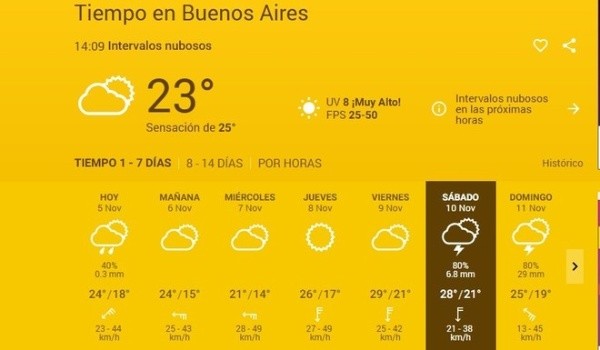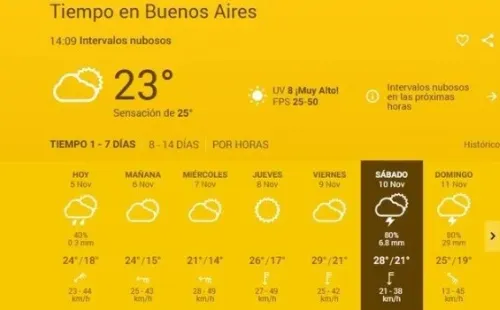 ¿De qué se trata? Los principales servicios meteorológicos de la República Argentina aseguran que el próximo sábado, el cielo estará cubierto durante todo el día, con probabilidad de lluvias e incluso tormentas eléctricas.