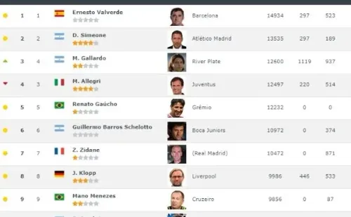 El sitio, reconocido también por su clasificación de equipos, actualizó el Top 100 de entrenadores y dejó varias curiosidades.