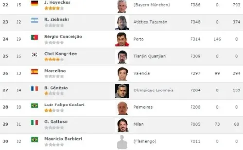 Sin embargo, cuando uno baja en las posiciones se lleva varias sorpresas:Guillermo Barros Schelotto(6°), quien está casi afuera de Boca, está por encima de Zinedine Zidane, Jürgen Kloppy Pep Guardiola. ¡Hasta Eduardo Coudet está por encima del español!