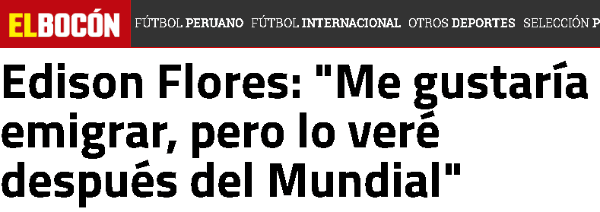 “Ellos solo vinieron a ver el tema deJefferson Farfán(renovación). Sobre lo mío, me gustaría emigrar pero eso lo veré después del Mundial. Ahora solo pienso en jugar y dar lo mejor con la selección peruana“, afirmó el volante del Aalborgde Dinamarca en exclusiva para “El Bocón”.