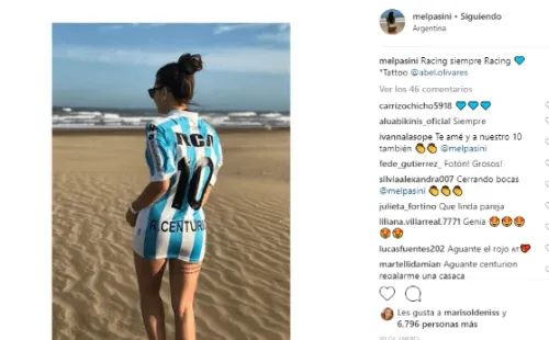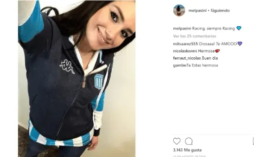 Ella es enferma de Racing. Pero enferma de verdad. A tal punto que la foto que subió hoy se la puede ver con una bikini con los colores de La Academia.