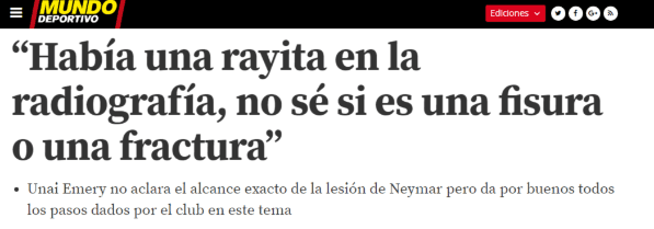 Primero, Unai Emery, entrenador de Paris Saint Germain, dijo que Neymar no se tendría que operar y que podría estar ante Real Madrid.