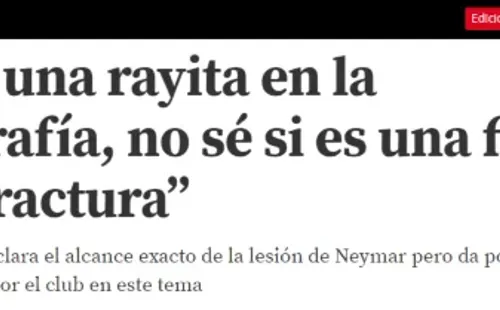 Lo que sorprendió hoy fueron las declaraciones del director técnico, quien ¿dudó de Ney?: “La fisura será más o menos grande. Yo he visto la radiografía yhabía una ‘rayita’ en el quinto metatarsiano, no sé si es fisura o fractura. Yo he tenido esa lesión y sé la progresión de este tipo de lesiones”.