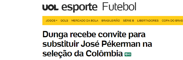 Según informóUOL Esporte,Dungaha recibido una oferta formal para ser el nuevo director técnico de la Selección Colombia.