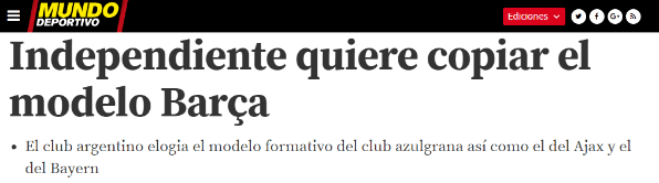 Mundo Deportivo armó una nota donde pegó las palabrasdel entrenador, quien también comentó: “En Argentina tenemos la mejor materia prima del mundo. Estoy convencido. Pero tenemos que ver cómo transformamos esa materia prima en un producto elaborado con un alto valor agregado. Eso depende de la organización de los directivos y de un proyecto deportivo que contenga todas las aristas”.