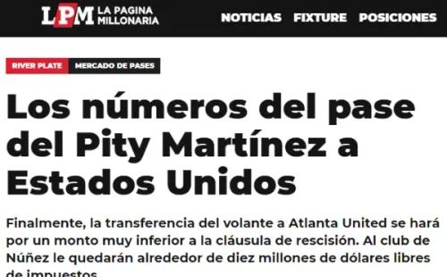 Según detalló La Página Millonaria, los números de la salida del Pity al elenco de la MLS decepcionarán a más de uno de los hinchas de River.