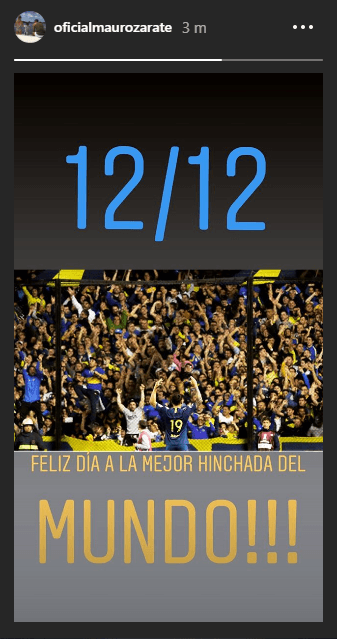 Claro, Mauro Zárate no podía faltar. ¿Y qué decidió hacer? Subió una foto de él celebrando un gol con la gente de fondo y un lapidario “feliz día a la mejor hinchada del mundo”.