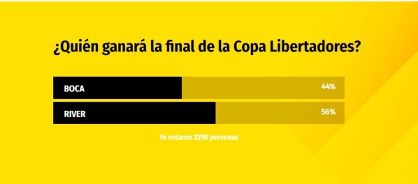 EnBolaviprecuperamos encuestas de diferentes diarios argentinos y del mundo en donde se preguntó a los lectores quién ganará la final.