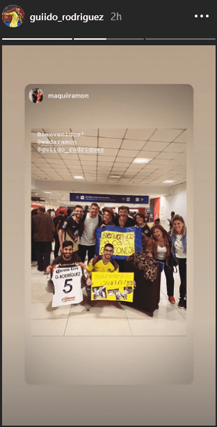 Guido Rodríguez llegó a la Argentina y fue recibido por amigos, que lo esperaban con letreros felicitándolo por su reciente logro en el Apertura.