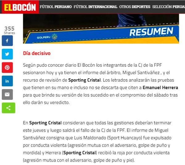 Según consignan medios locales la deliberación final podría conocerse el día jueves y en caso de ser eliminada la expulsión, el goleador del cuadro Rimense se enfocaría netamente en el clásico rival al que superó en la pasada final por el título del 2018.