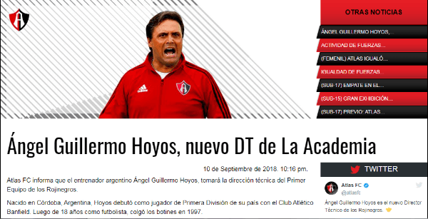 El Atlas quiere resurgir. Luego de una primera parte del Apertura para el olvido, hoy oficializó la llegada de su nuevo entrenador: Ángel Guillermo Hoyos.