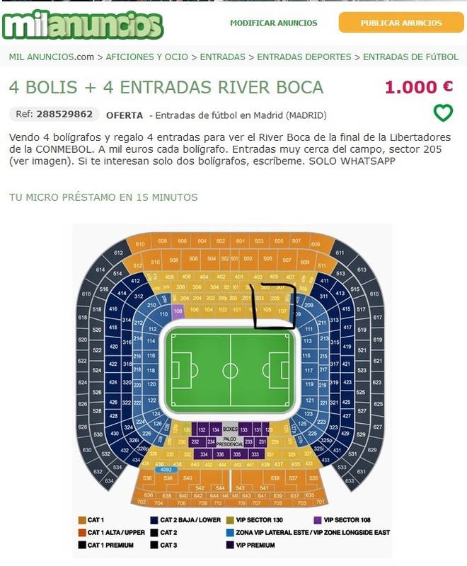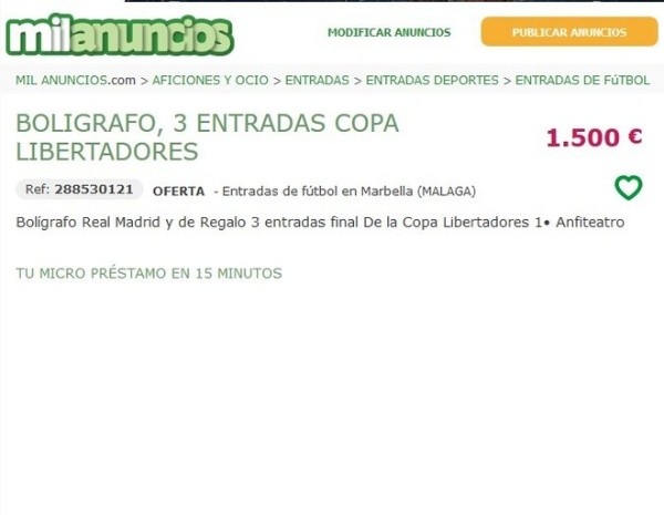 Poniendo que venden bolígrafos y además regalan entradas, ya que vender las localidades directo es ilegal, los españoles hacen su negocio y en Argentina, el enojo es cada vez mayor. ¿Para esto se juega ahí la final?