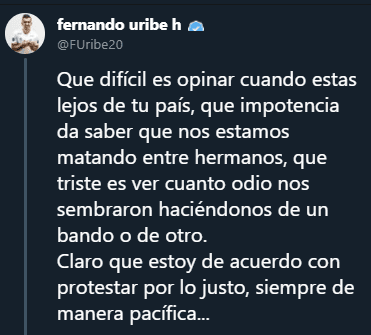En ese sentido, el plano deportivo no ha escapado a este fenómeno, aunque ha sido en menor medida, ya que ningún jugador de la Liga Águila ha mostrado su apoyo o rechazo y de la Selección Colombia solo se ha manifestado Juan Guillermo Cuadrado.