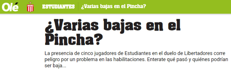 ¿Que pasó? Como todos los equipos, Estudiantes presentó su lista de buena fe de cara a los octavos de final de dicha competencia, detallando los cinco cambios que iba a realizar en su plantel.