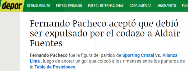 Según señaló Depor, el jugador de Cristal rompió el silencio y explicó: “Viendo la repetición de la jugada en mi casa, me doy cuenta que lo golpeo pero no es algo que me nace, sino que lo hago por casualidad”. “Me sentí mal, así que le escribí aAldair Fuentes, hablamos un poco y le pedí disculpas”, confesó.