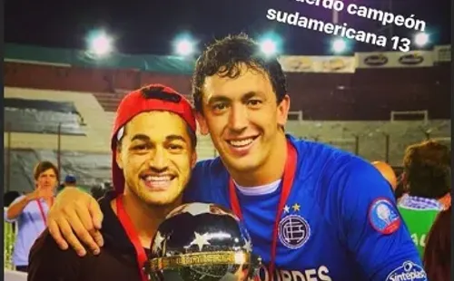 Hace pocos minutos, el arquero subió una historia a Instagramcon su ex compañero, Lautaro Acosta, durante los festejos por la obtención de la Copa Sudamericana en 2013.