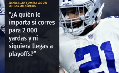 “Hay que ganar partidos. Estoy tratando de ganar un Super Bowl. Realmente no me importa el número (de yardas). ¿A quién le importa si corres para 2.000 yardas y ni siquiera llegas a playoffs?” declaró Elliott a Jon Machota de The Athletic.
