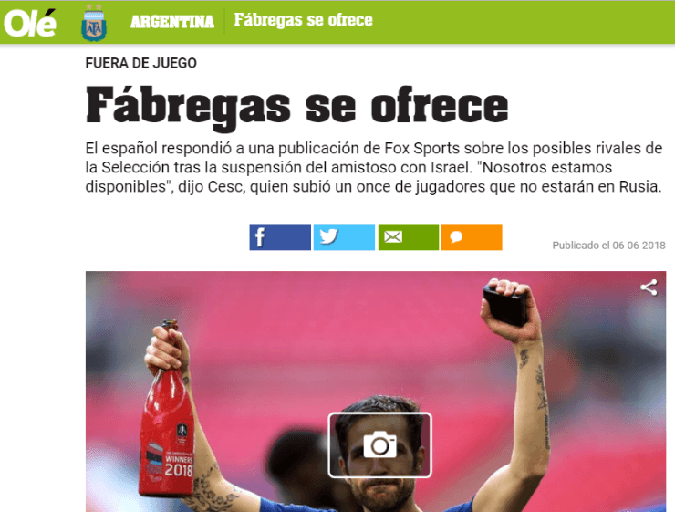 Quien apareció en escena, sorprendentemente, fueCesc Fàbregas. El jugador del Chelsea se tomó con humor la situación y postuló de forma irónica un once deluxepara que el equipo comandado por Jorge Sampaoli pueda sumar minutos de fútbol y no perder el ritmo.