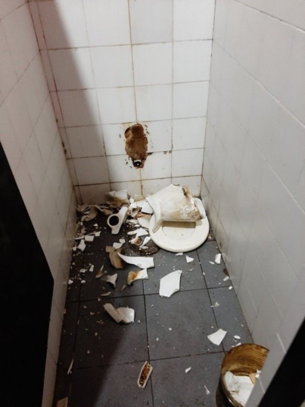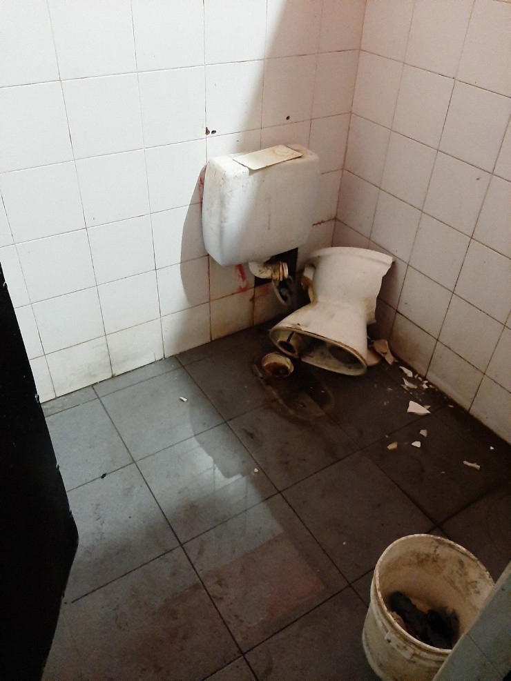 De eso, lo más bello del deporte, lo impredecible, pasamos a la vergüenza: un pequeño grupo de enojados hinchas de la T se ocuparon de destrozar los baños del Estadio Marcelo Bielsa.