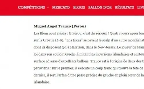 “Perú podría considerarse el país sudamericano más débil en la Copa del Mundo, pero no es así. Enfrentado a dos naciones europeas (Croacia e Islandia) para medir sus enfrentamientos contra Francia y Dinamarca, la formación del técnico argentino Ricardo Gareca afirmó sus intenciones para el Mundial Rusia 2018”, escribieron en dicha nota. Finalmente, agregaron:“Perú es un oponente serio para los ‘Blues’ en este Grupo C”.