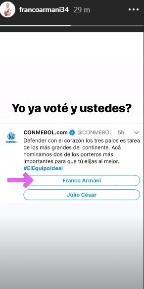 El arquero dejó en claro por una historia de Instagram que quiere ser el mejor de América en su puesto.
