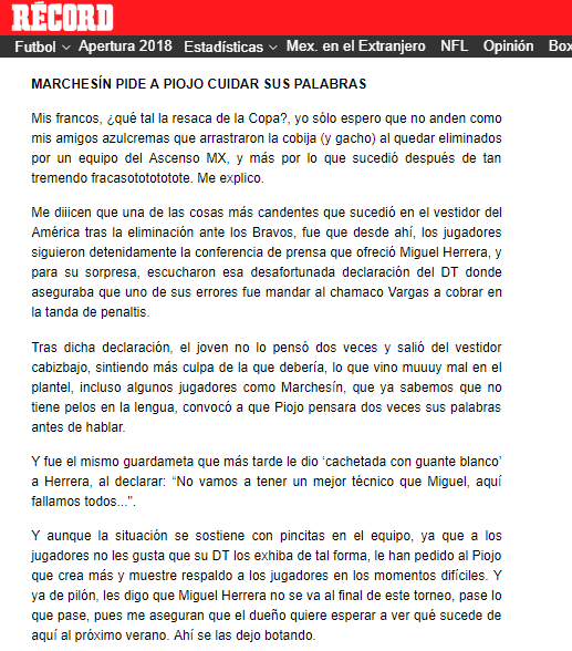 Según publicó el Francotirador de Récord hoy, los futbolistas de Las Águilas estaban viendo en vivo y en directo la conferencia del Piojo.