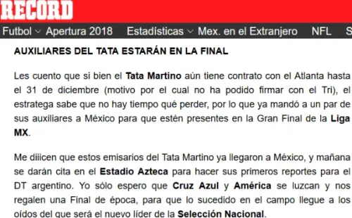 Por eso, emisarios del argentino llegaron anoche al país, para hoy dar cita en el Estadio Azteca y hacer sus primeros reportes del partido entre Cruz Azul y América, según lo informó “El Francotirador” de Récord.