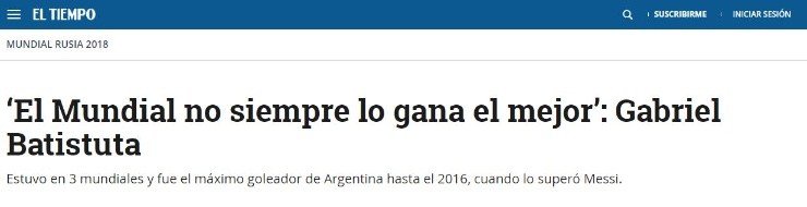 Batistuta, habiendo portado de buena forma la fundamental número 9 en cualquier selección (en su caso Argentina), habló con El Tiempo de Colombia sobre el puesto en cuestión y floreó al artillero de la Juventus, Gonzalo Higuaín.